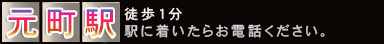 元町駅から徒歩1分,駅に着いたらお電話ください。